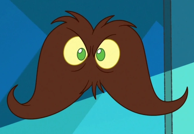 Since he got shredded by a lawnmower after his defeat, Van Dyke had to put himself together into a mustache, losing his goatee in the process. His new look appears even bushier than before. Due to the loss of his beard, he no longer has a visible mouth.